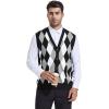 Beotyshow Mens Argyle Sweater Vests V Neck Sleeveless Cardigan Vest Knitwear(Black)