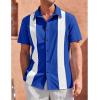 Mens Vintage Bowling Shirts Short Sleeve Button Down Guayabera Beach Shirts for Men(Royal Blue)